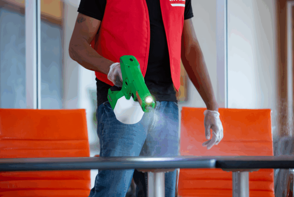 Ultimately, electrostatic spraying reaches the impossible corners, crevices, backsides, and other hard-to-reach places often missed during a general cleaning. This allows you to use the sprayer to effectively disinfect your entire facility quickly, easily and without expending dozens of hours wiping down every nook and cranny of your building.